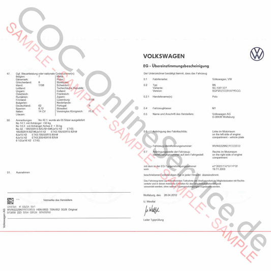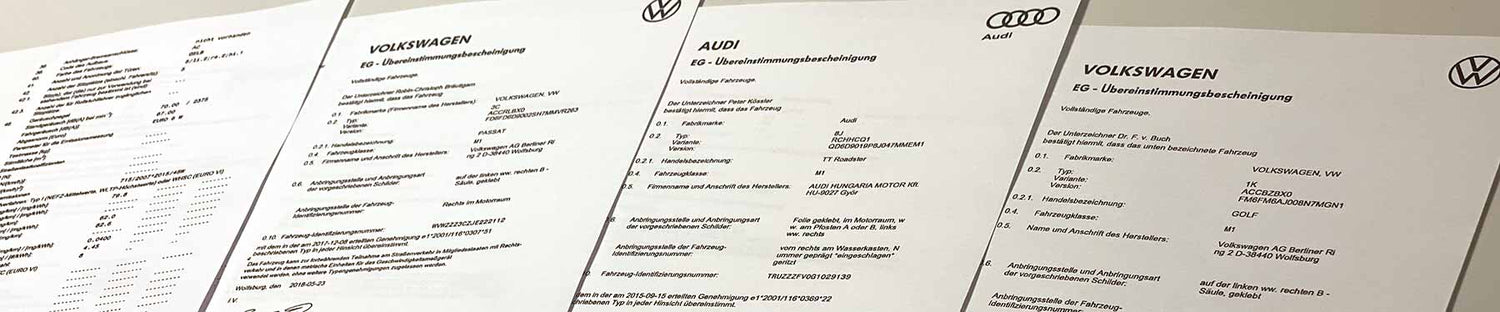 COC Papiere für VW Volkswagen (Certificate of Conformity)