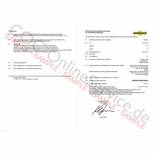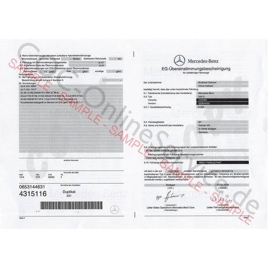 COC Papiere für Mercedes-Benz (Certificate of Conformity)