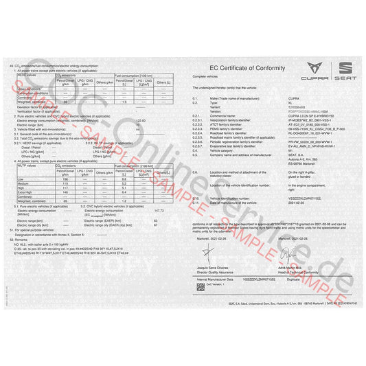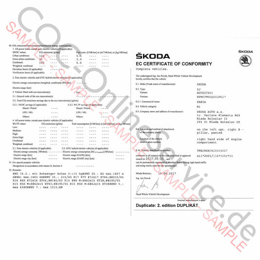 aktuell nicht verfügbarCOC Papiere für Skoda (Certificate of Conformity)