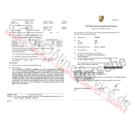 Έγγραφα COC για Porsche (Certificate of Conformity)